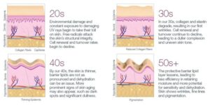 Now we know that skin regeneration slows down with age, we can now be proactive in maintaining our skin care routine. As we age our skin needs more attention, if we just let our skin renew by itself, we might end up with dark spots, freckles, wrinkles, and dull sagging skin.
